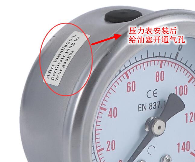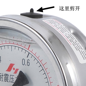 很多耐震型壓力表的外殼上都會有一個標(biāo)貼(有時候有一把剪刀),大體意思就是安裝后要把油塞剪開或者戳一個孔。油塞本來就是為了防止耐震壓力表內(nèi)的阻尼油漏出來,為什么要開一個孔呢?